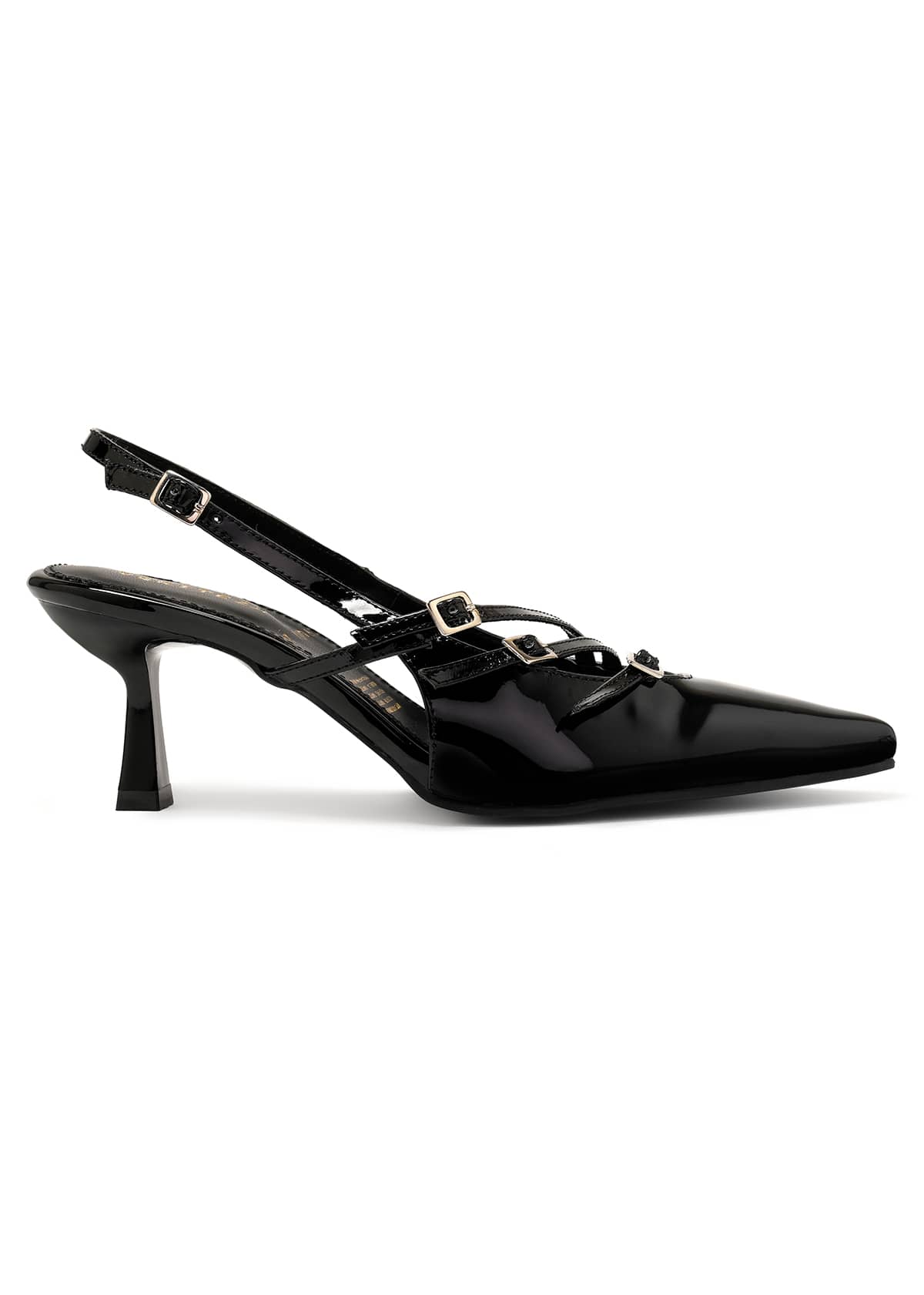 Su acabado brillante eleva cualquier look y el diseño destalonado estiliza el tobillo mientras brinda firmeza.
