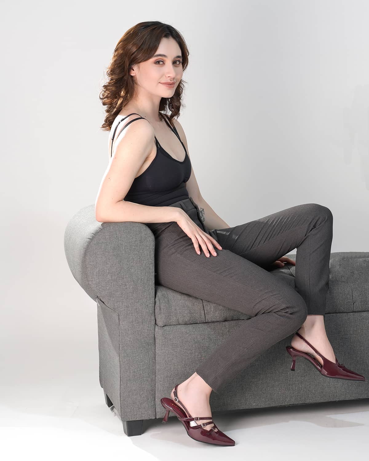 Mirna fue diseñada para destacar. Fabricada con tres tiras delgadas cruzadas con mini hebillas, que aportan una silueta delicada y femenina sin perder estructura.