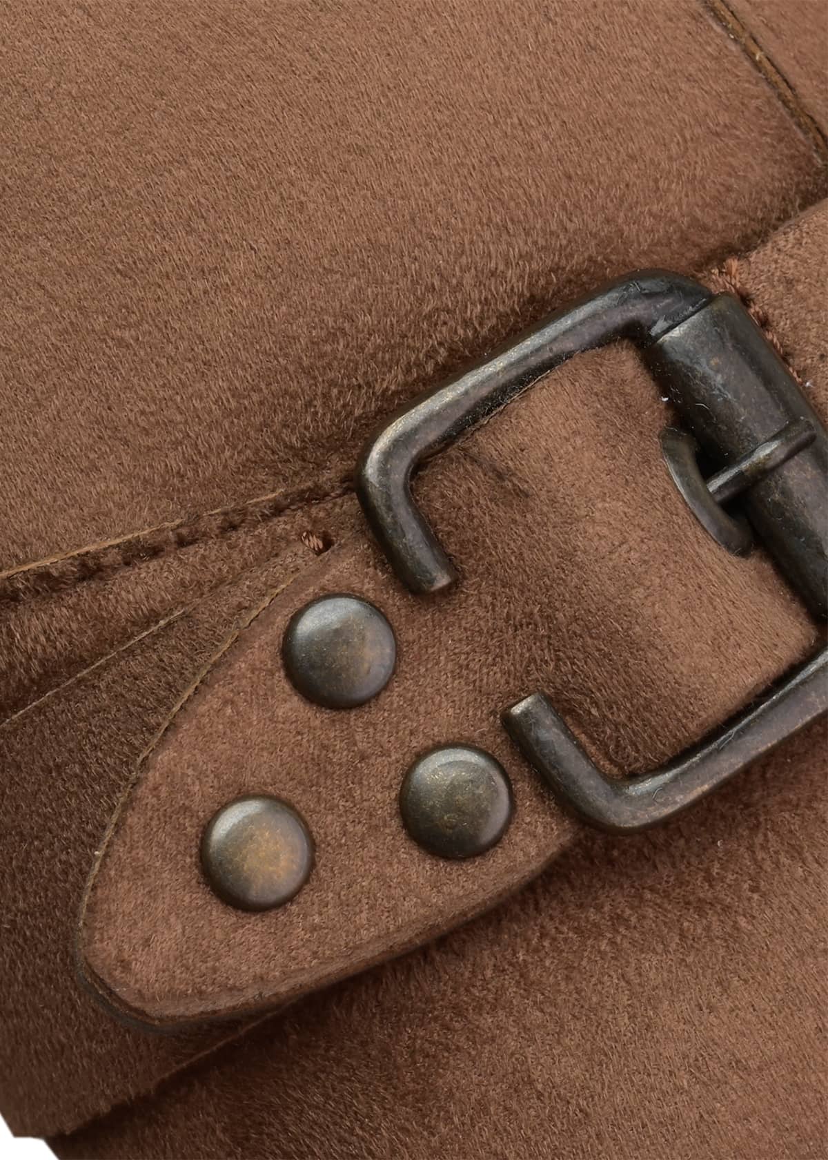 El acabado tipo gamuza aporta una textura suave al tacto, equilibrando lo rudo y lo elegante en una sola pieza.