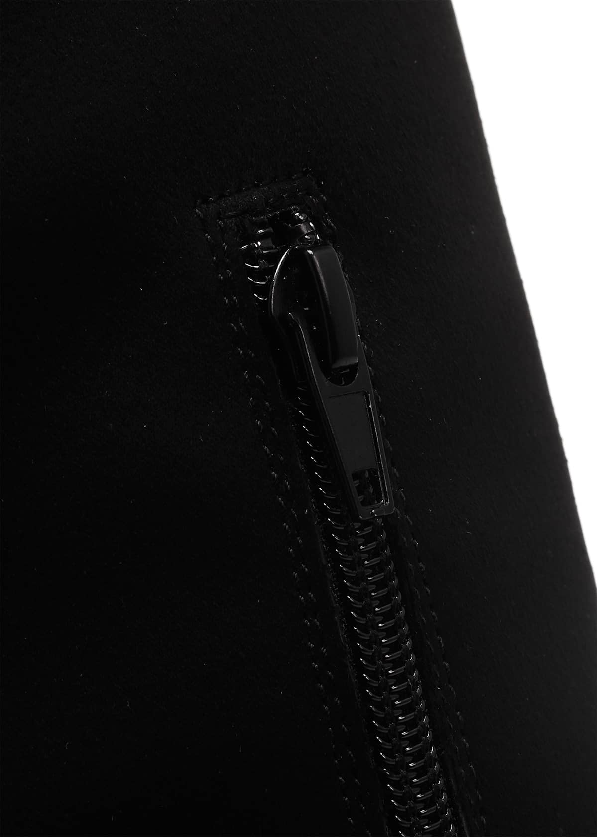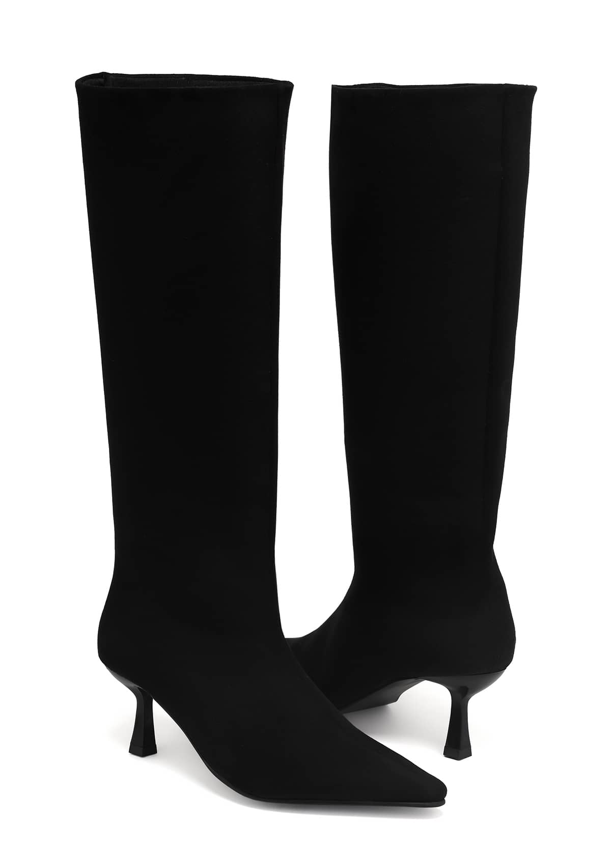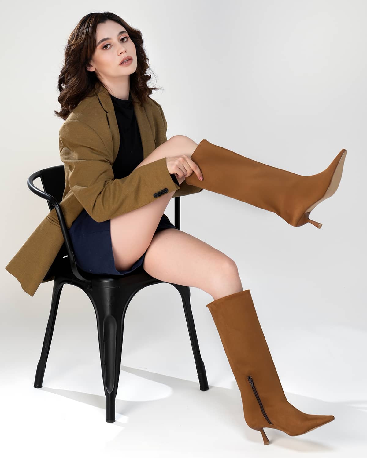 Fabricadas por manos expertas, su textura tipo gamuza y acabado satinado crean una apariencia uniforme y refinada. La punta alargada estiliza visualmente las piernas, haciendo que cada paso se vea más largo y elegante.
