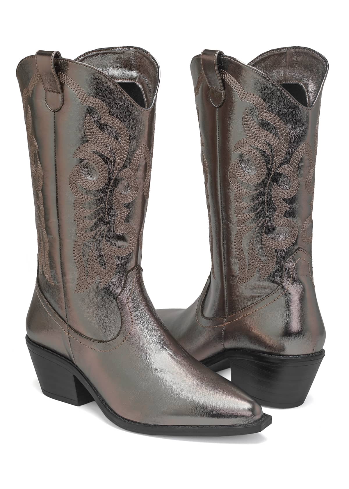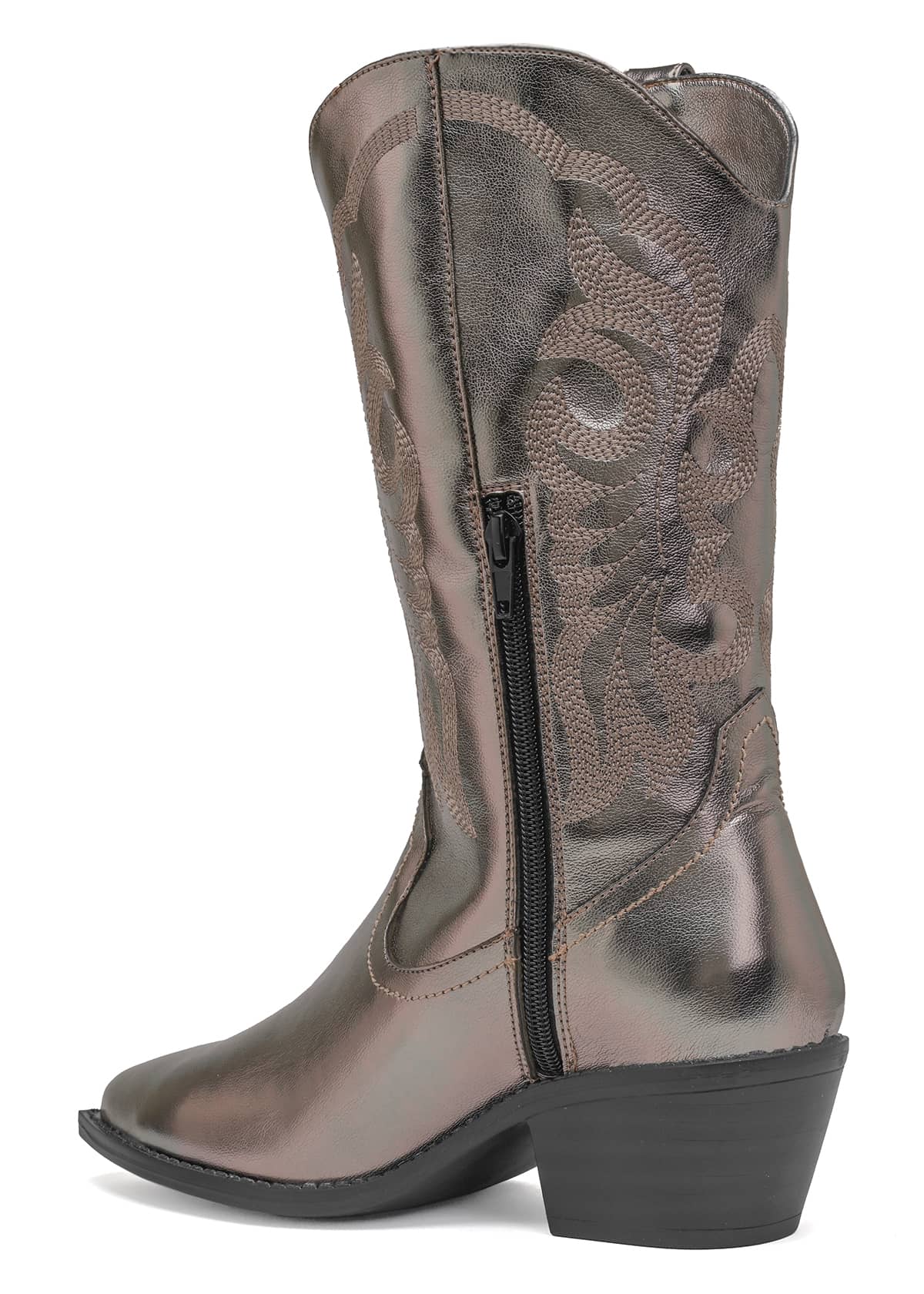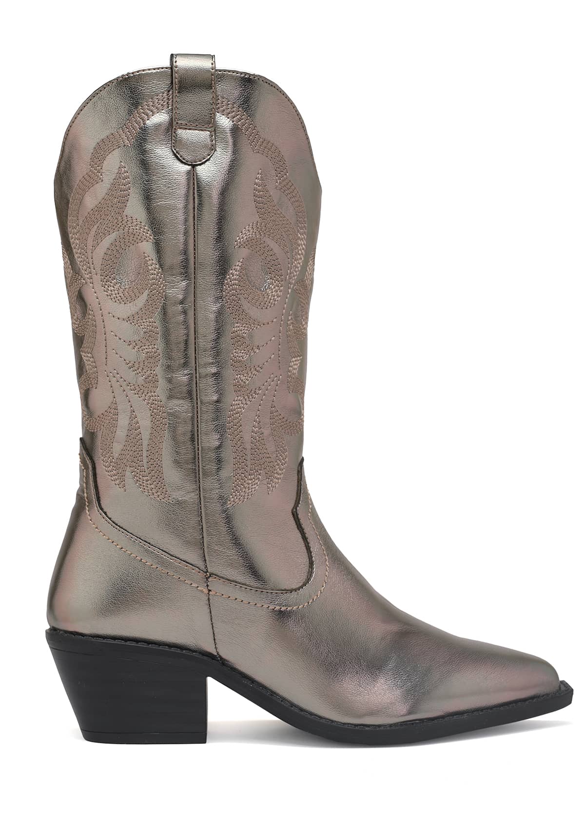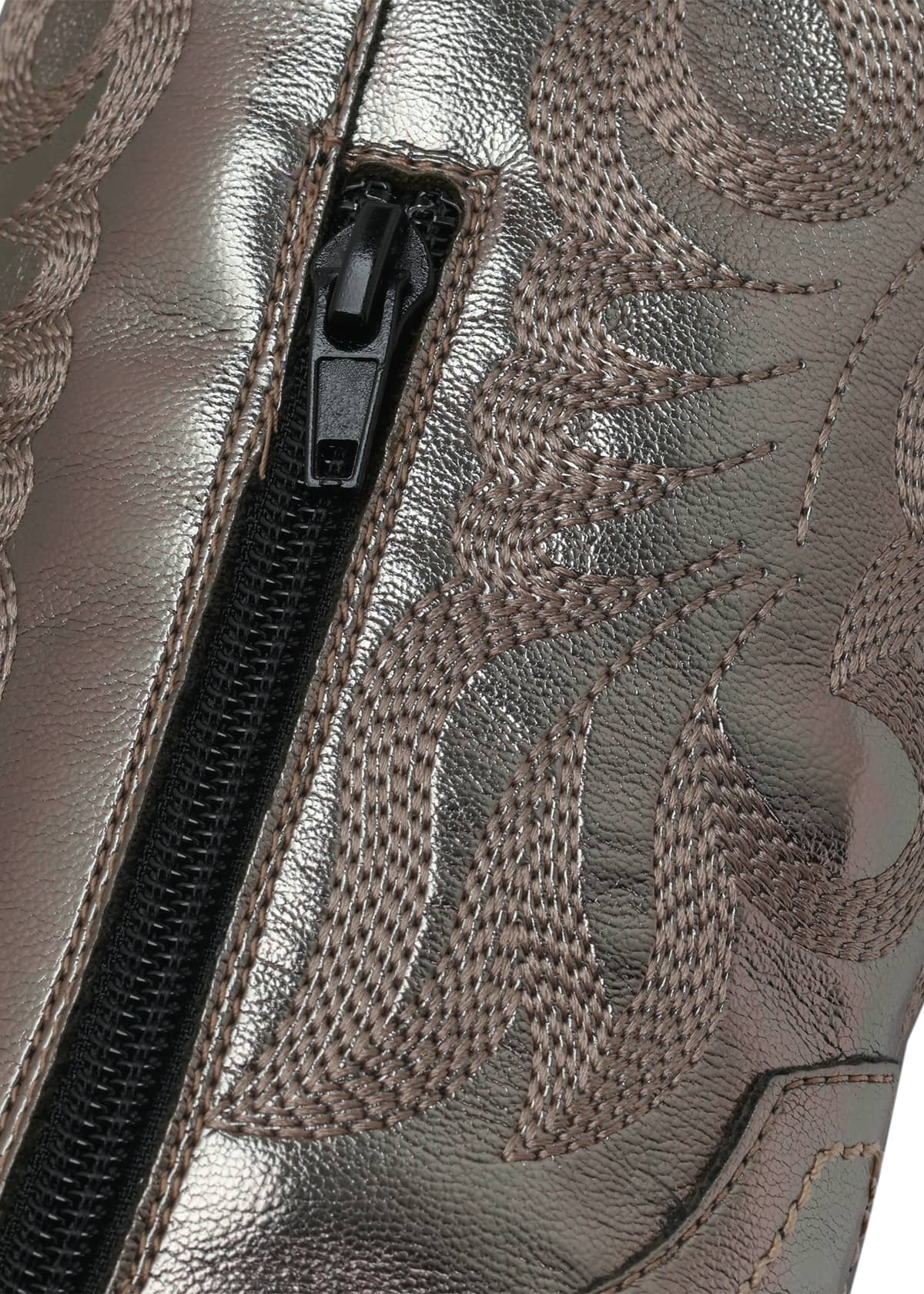 Un giro sofisticado a la tendencia western. Su tono acero captura la luz con elegancia y proyecta una presencia moderna, sin perder la esencia artesanal que distingue a las botas vaqueras. El bordado lateral aporta textura y profundidad al diseño, logrando un equilibrio perfecto entre fuerza y feminidad.