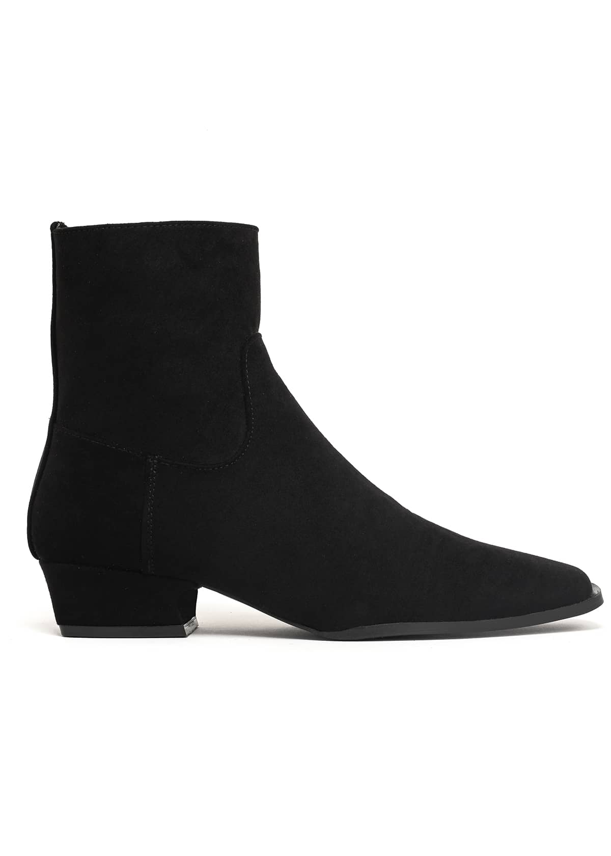 Su textura tipo gamuza envuelve el pie con un acabado mate elegante, mientras que la punta cuadrada aporta ese aire contemporáneo que lo hace destacar sin esfuerzo.